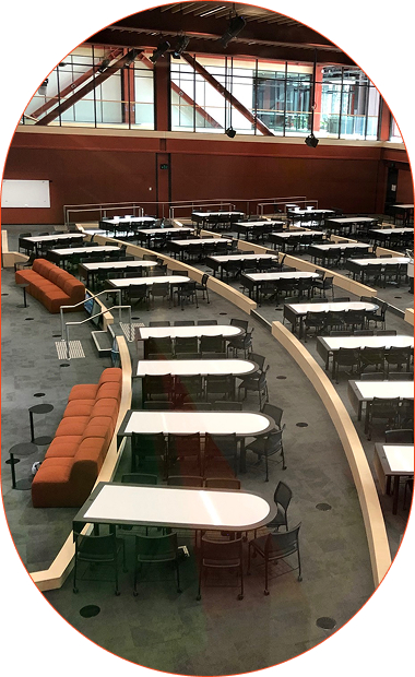 Moving walls, seating, tables, and modular furniture also enable community spaces to be quickly reshaped for meetings, events, and group activities.